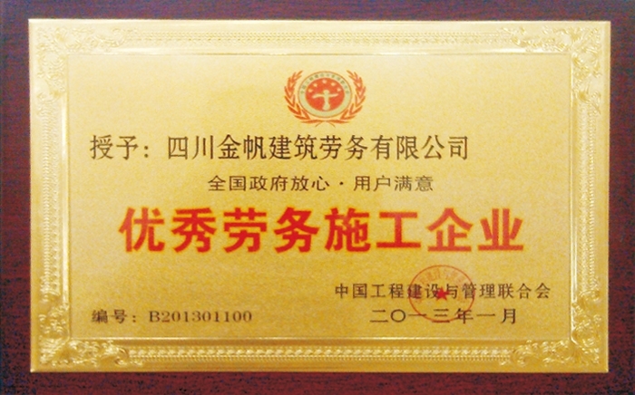 金帆全國優(yōu)秀建筑勞務(wù)企業(yè)
