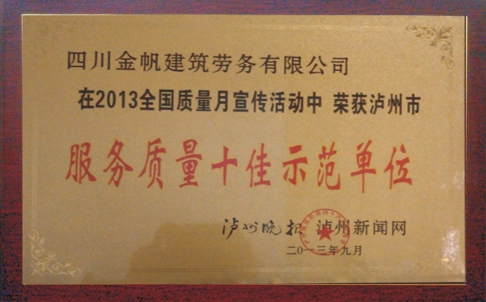 金帆服務(wù)質(zhì)量十佳示范單位