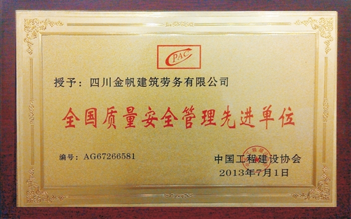 金帆全國質(zhì)量安全管理先進(jìn)單位...
