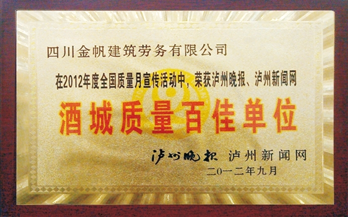 金帆酒城質(zhì)量百佳單位